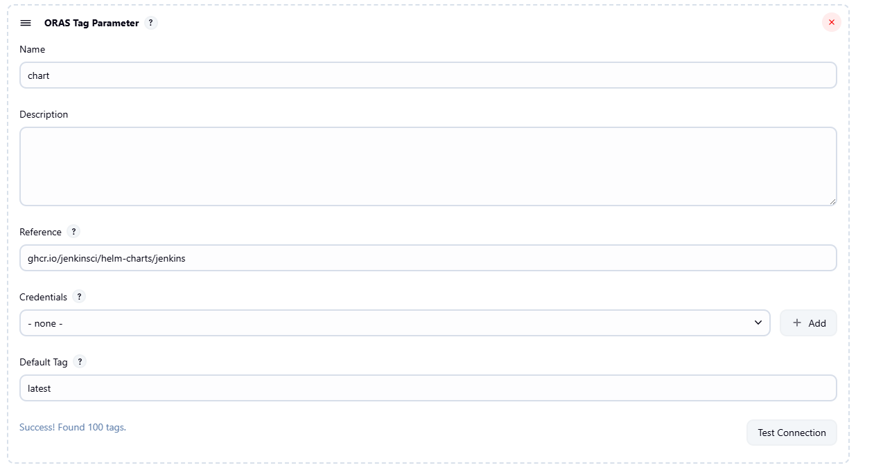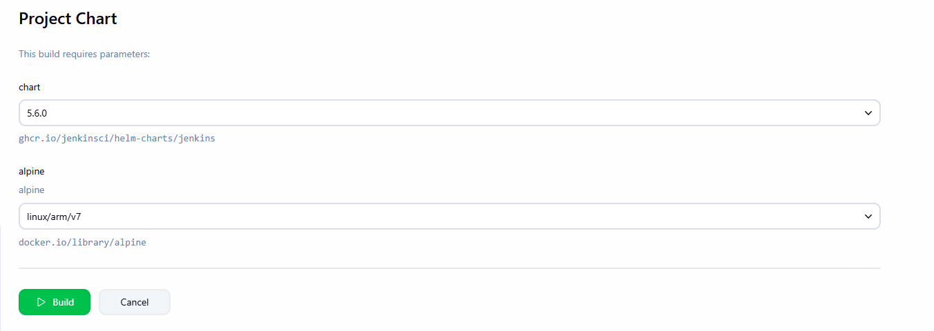 <PARAMETER_NAME>the resolved reference such asghcr.io/jenkinsci/helm-charts/jenkins@sha256:42869d33a9b684f4c960b0256f1c0a444750b6e9fc70d03b929e84d7c728e19a(always set)<PARAMETER_NAME>_TAGthe selected tag such as5.6.0(always set)<PARAMETER_NAME>_REGISTRYthe resolved registry such asghcr.io(always set)<PARAMETER_NAME>_REPOSITORYthe resolved repository such asjenkinsci/helm-charts/jenkins(always set)<PARAMETER_NAME>_DIGESTthe resolved digest such assha256:42869d33a9b684f4c960b0256f1c0a444750b6e9fc70d03b929e84d7c728e19e(only set if valid tag)<PARAMETER_NAME>_TITLEtitle annotation such asjenkins(if available)<PARAMETER_NAME>_DESCRIPTIONdescription annotation (if available)<PARAMETER_NAME>_CREATEDcreated annotation such as2024-09-12T16:01:30Z(if available)<PARAMETER_NAME>_SOURCEsource annotation such ashttps://github.com/jenkinsci/jenkins(if available)
