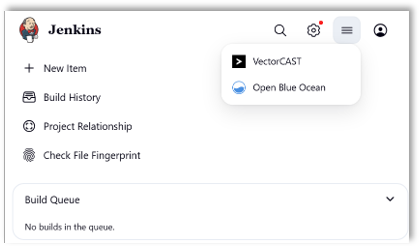 This plugin adds a new top-level menu item to the Jenkins sidebar. Select the VectorCAST menu item to create a new VectorCAST Job.