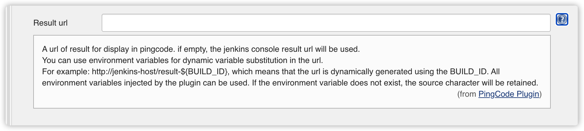 - Optional. A url of result for display in pingcode. if empty, the jenkins console result url will be used. -