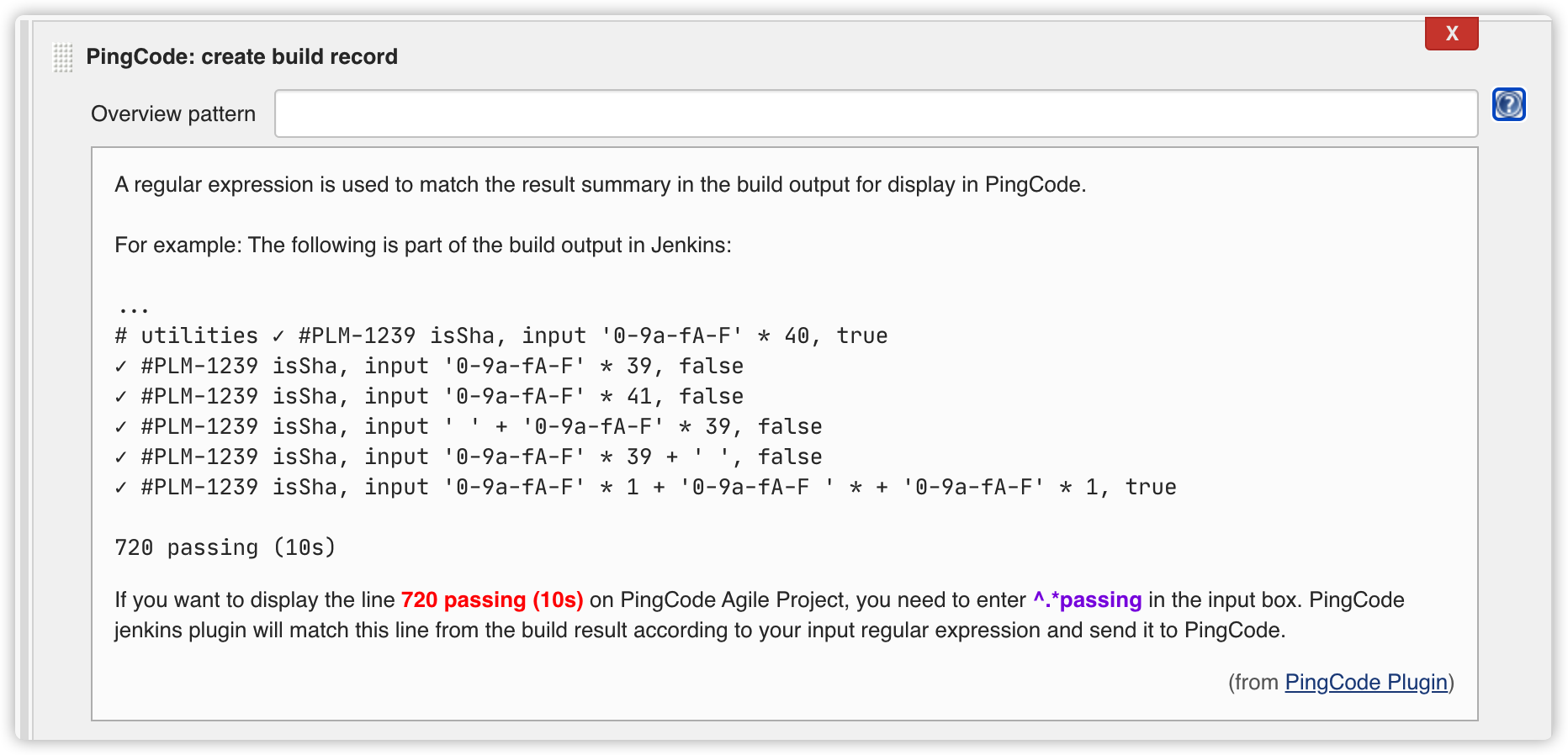 - Optional. A regular expression is used to match the result summary in the build output for display in PingCode. -